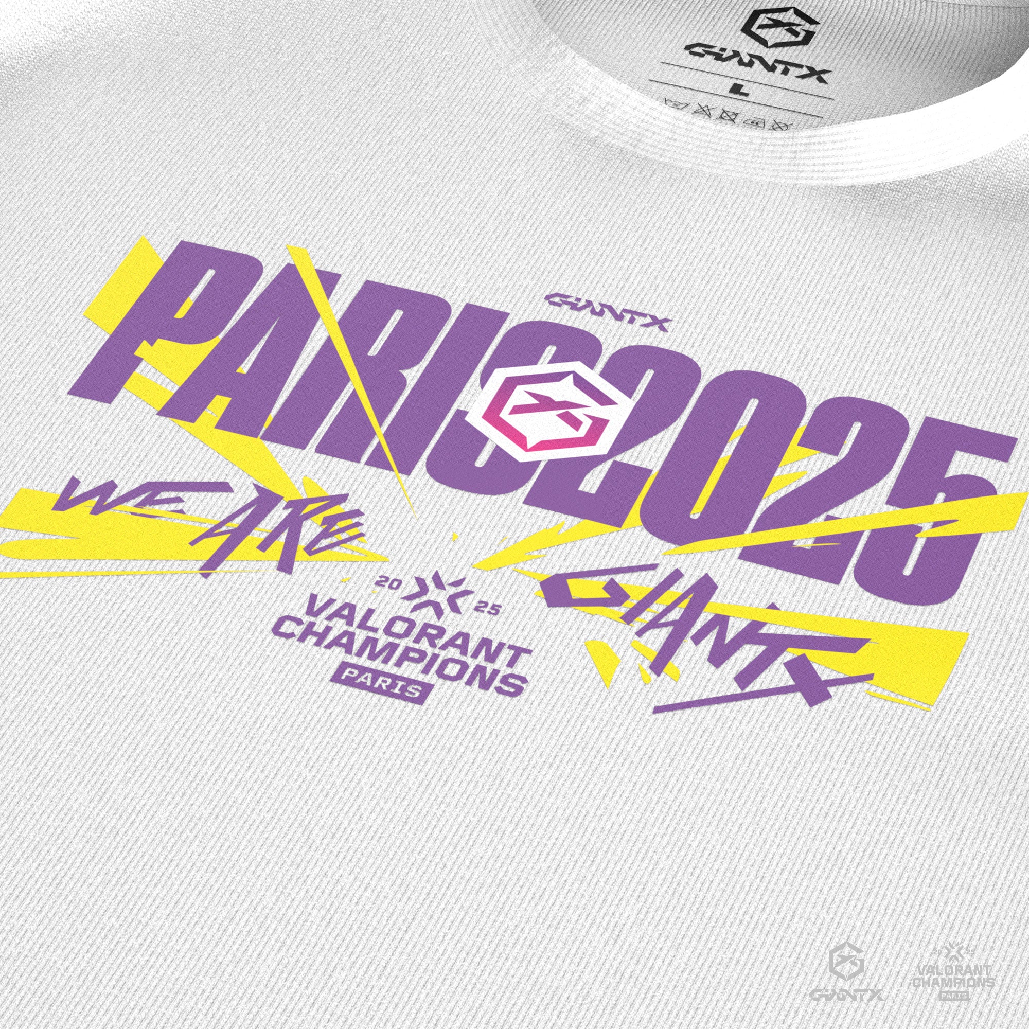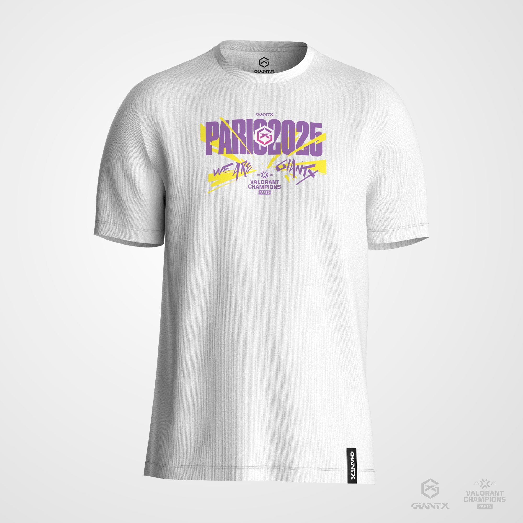 Esta camiseta GIANTX conmemorativa celebra nuestra clasificación al Valorant Champions 2025, con un diseño streetwear inspirado en la ciudad y el torneo.