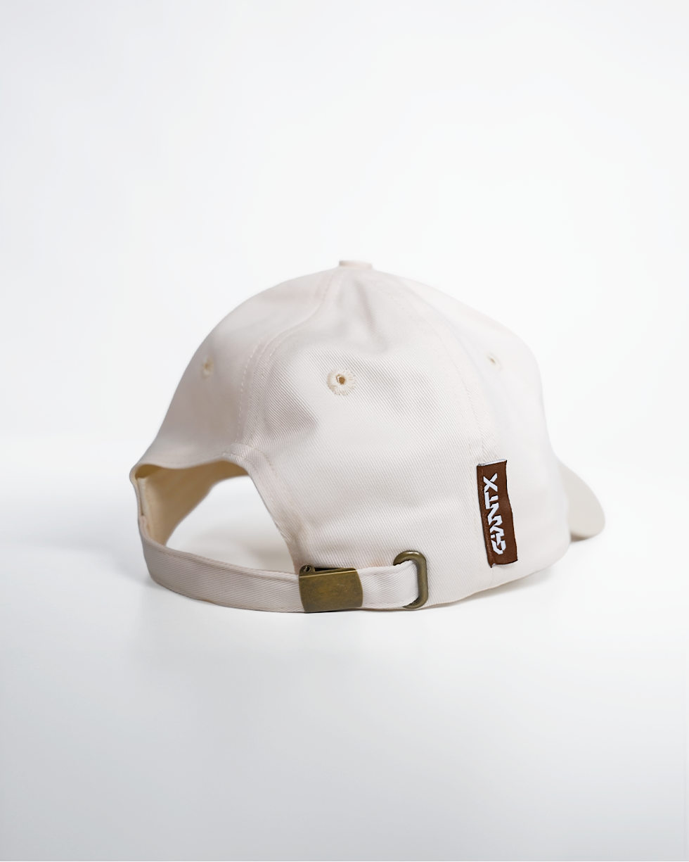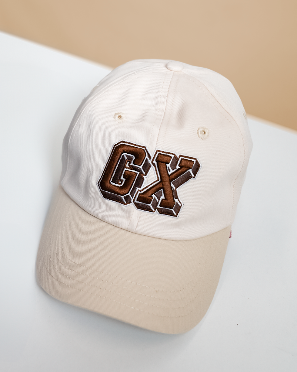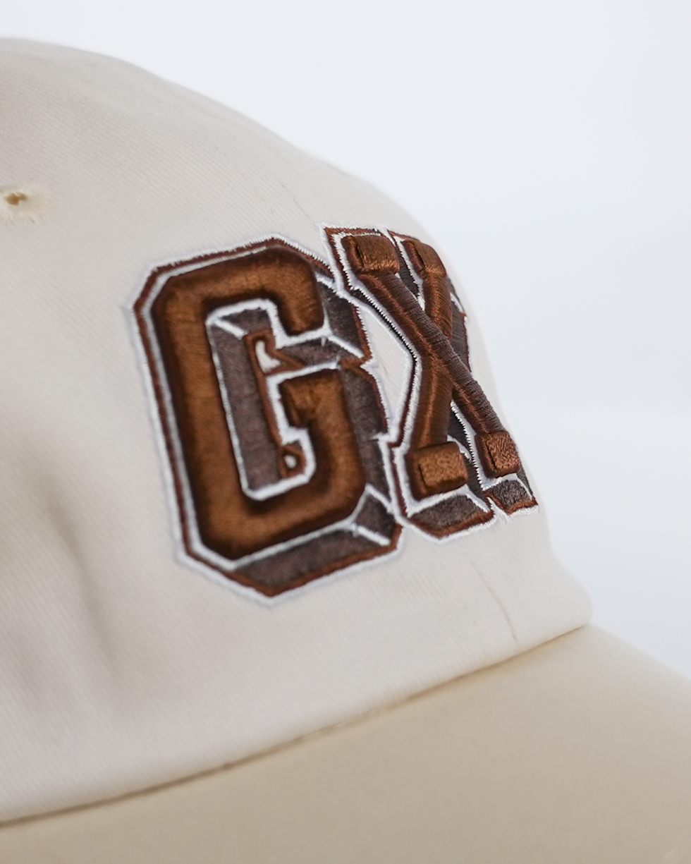 La gorra GIANTX Crude Cap mezcla tonos beige y marrón en un diseño limpio y versátil que encaja tanto en el día a día como en cualquier setup camuflado fuera del PC.