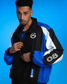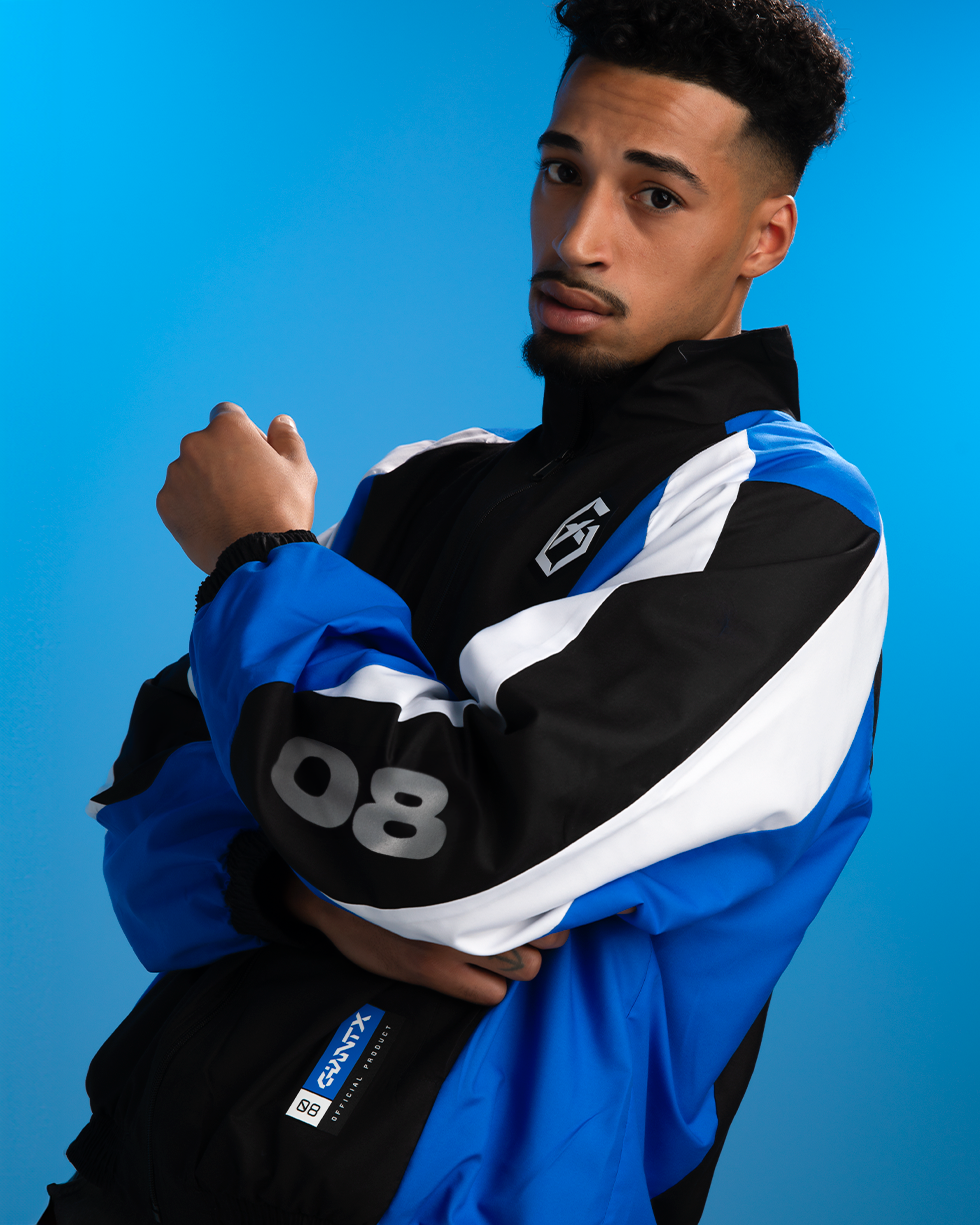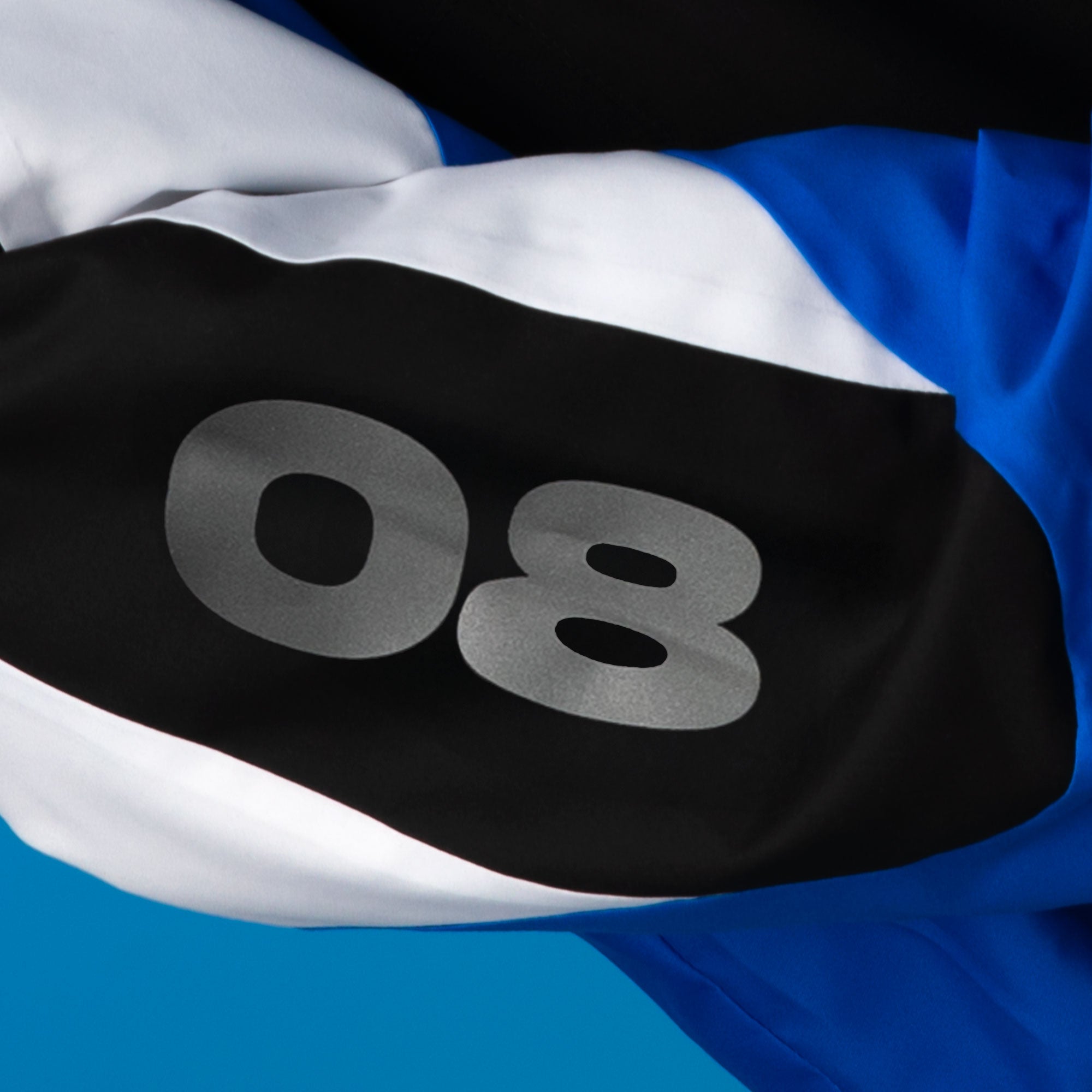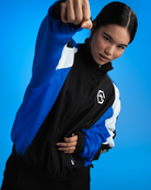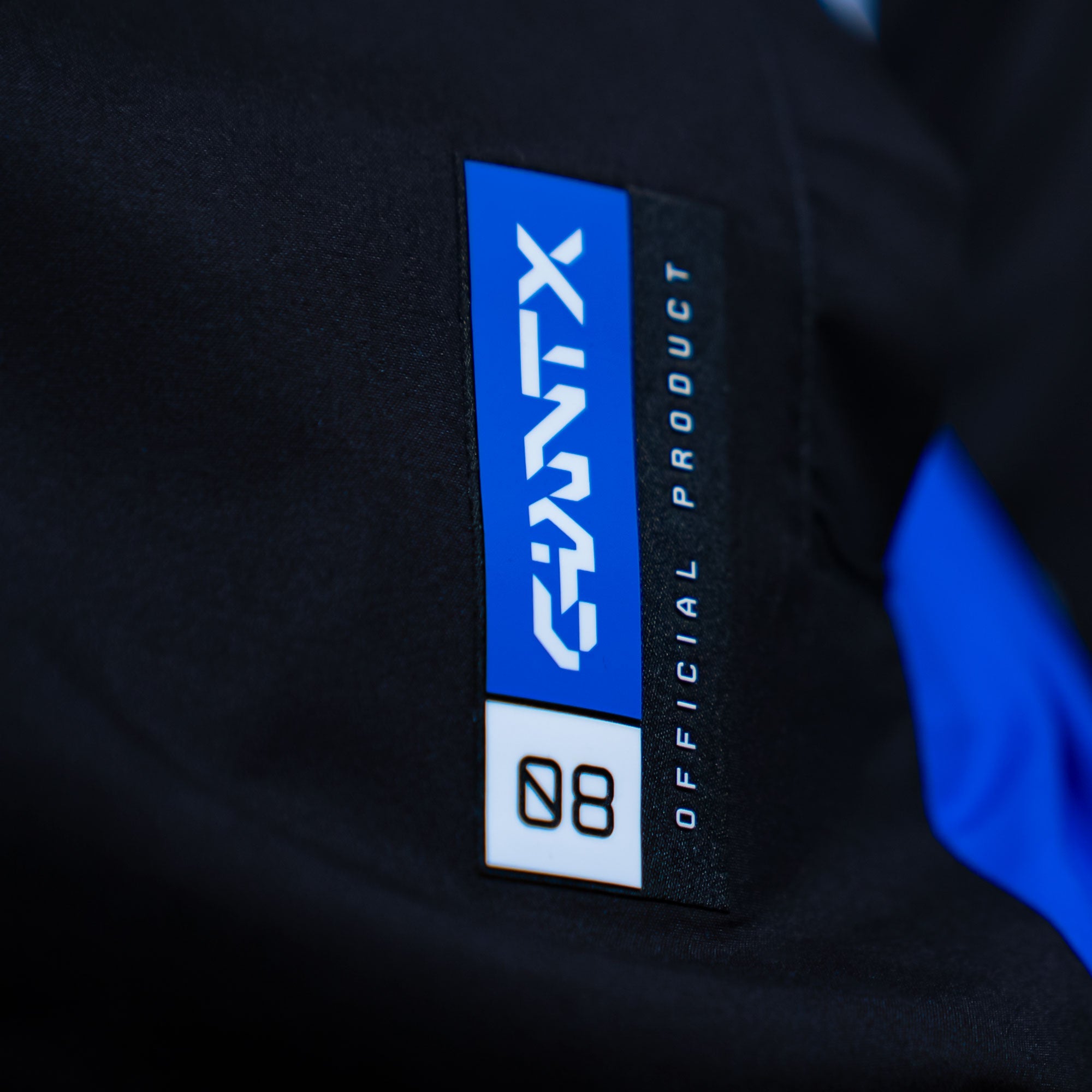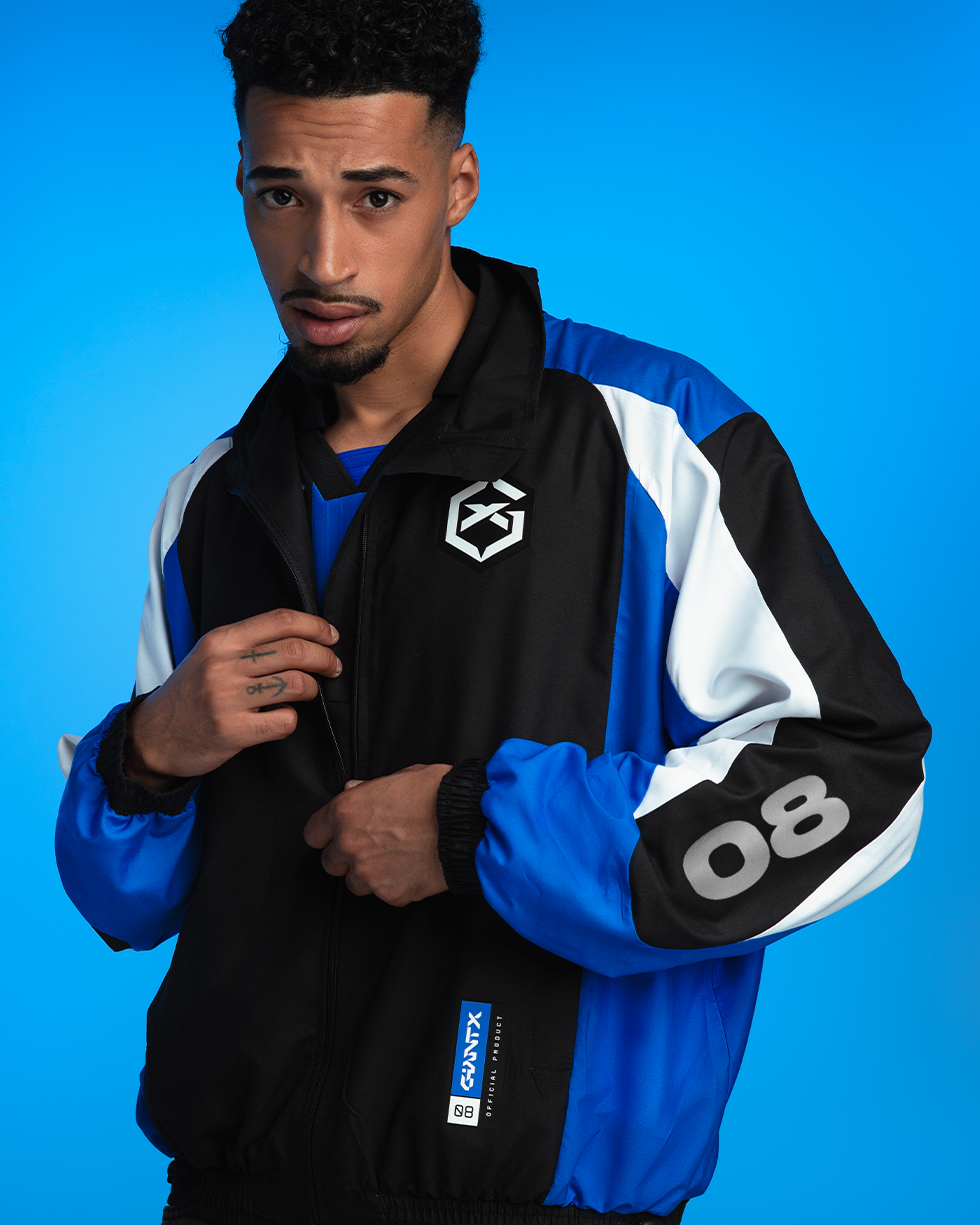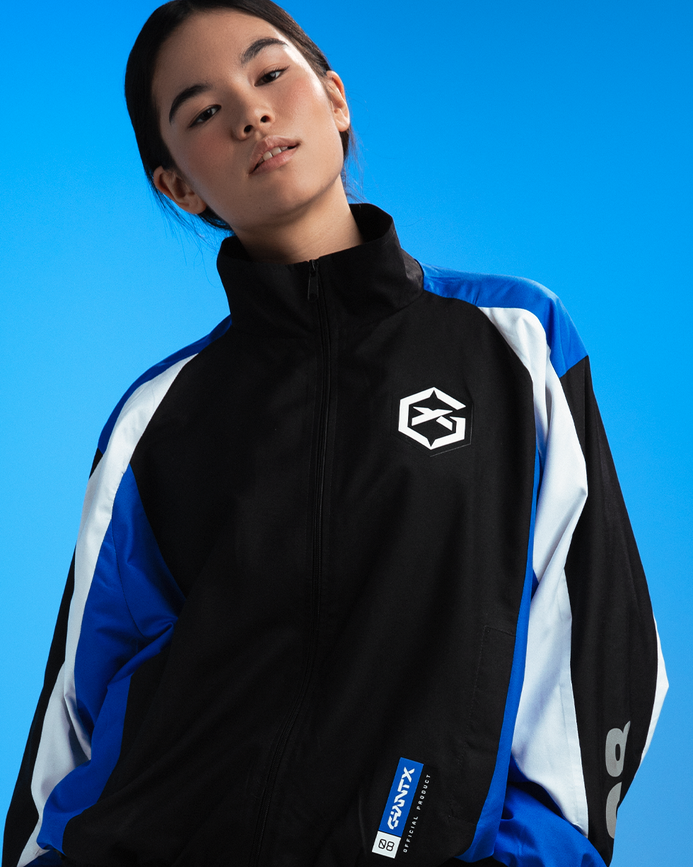 Diseñado con un contraste de colores negro, azul eléctrico y blanco, este cortavientos oversize no solo te protege del viento y la humedad, sino que también muestra tu apoyo a GIANTX con un estilo retro boxy.